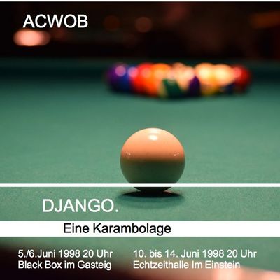 1997 wollten Stephan und ich dann noch eine Stufe weiter und ein Projekt herausbringen, das uns endlich auch mal etwas Öffentlichkeit bescheren sollte. Zusammen mit Stephans WG-Kollegin Gabi Szabo, die als Regisseurin in München lebte, wollten wir ein Theaterstück mit improvisierter Musik erarbeiten. Grundlage dafür war ein dreiteiliges Langgedicht von Stephan: Es umkreist die Begegnung von Django Reinhardt mit einem deutschen Wehrmachtsoffizier, der als heimlicher Fan seiner Musik diesen bei einer Kontrolle nicht verhaftet. Es geht also um Angeln, Malen und Billardspielen; um Pflicht versus Liebe zur Musik und um eine mögliche Position für Widerstand. Ich schrieb eine Ouverture und mehrere Stücke, die den Abschnitten des Gedichts zugeordnet waren, und Parts enthielten, mit denen wir gemeinsam mit den Schauspielern über Text/Aktion/Musik improvisierten.