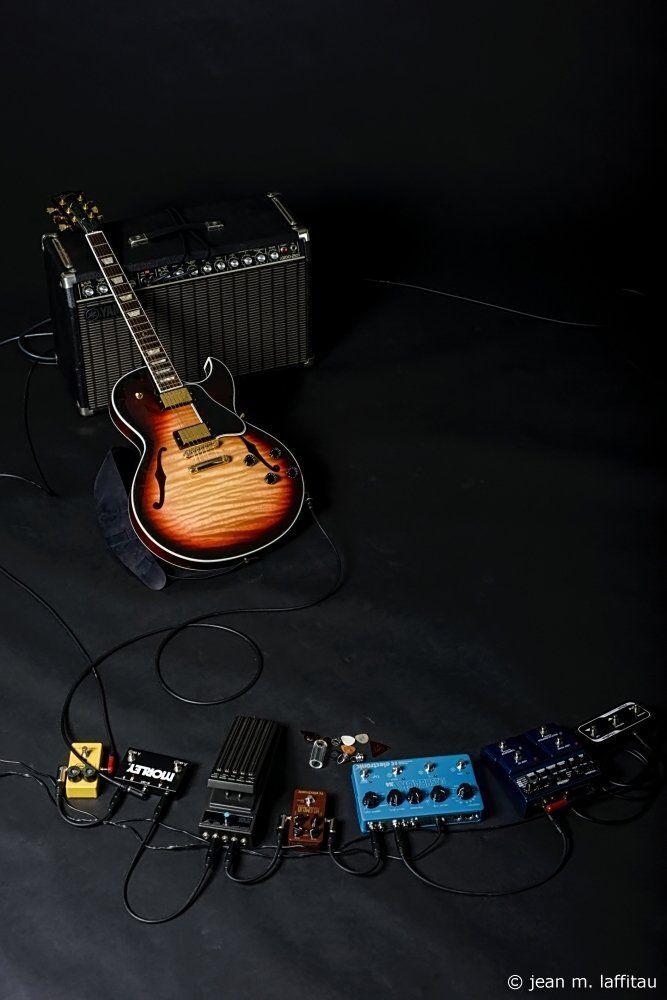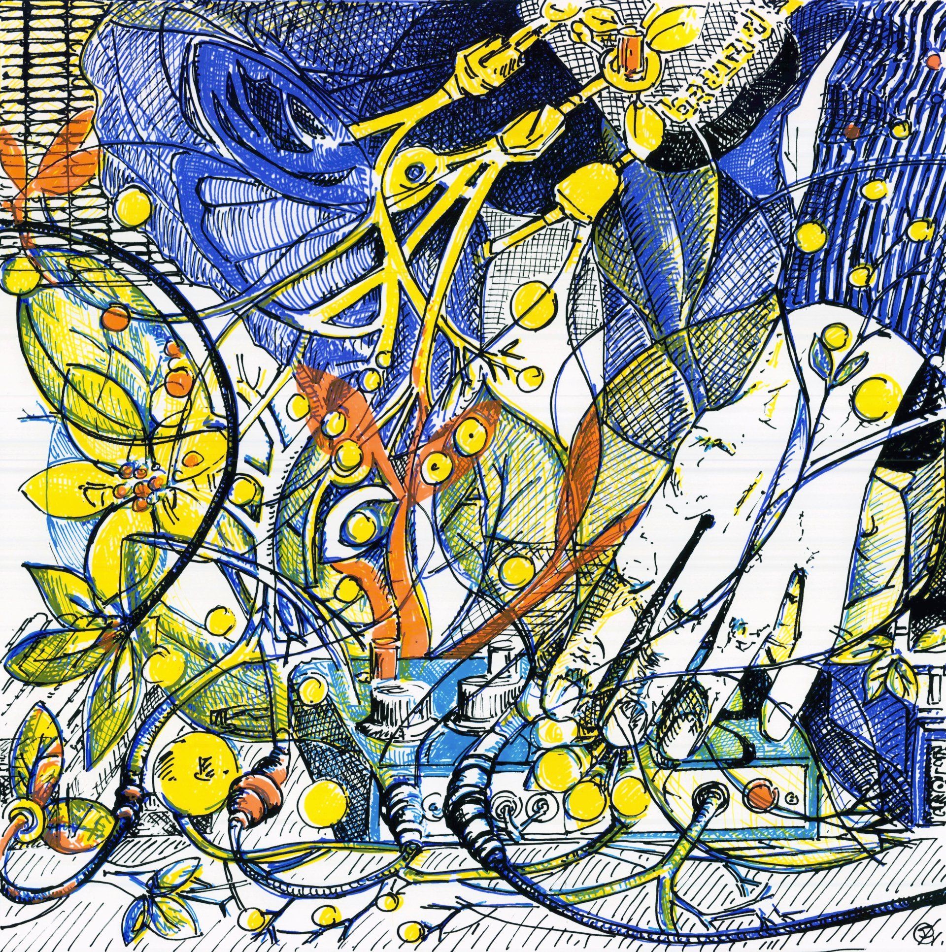 Sabine ist ein Stück, das mehr oder weniger in einem Fluss entstanden ist, also sehr natürlich und ohne Anstrengung gewachsen ist. Auch wenn das Bild rechts mehr Elektronik suggeriert, ist es nur mit klassischer Gitarre besetzt: Wurzeln, Triebe und Blüten.